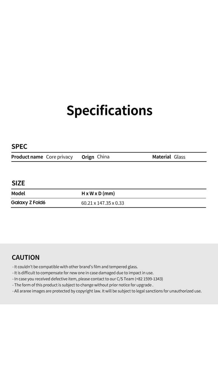 مشخصات Araree Core Privacy Glass Galaxy Z Fold6