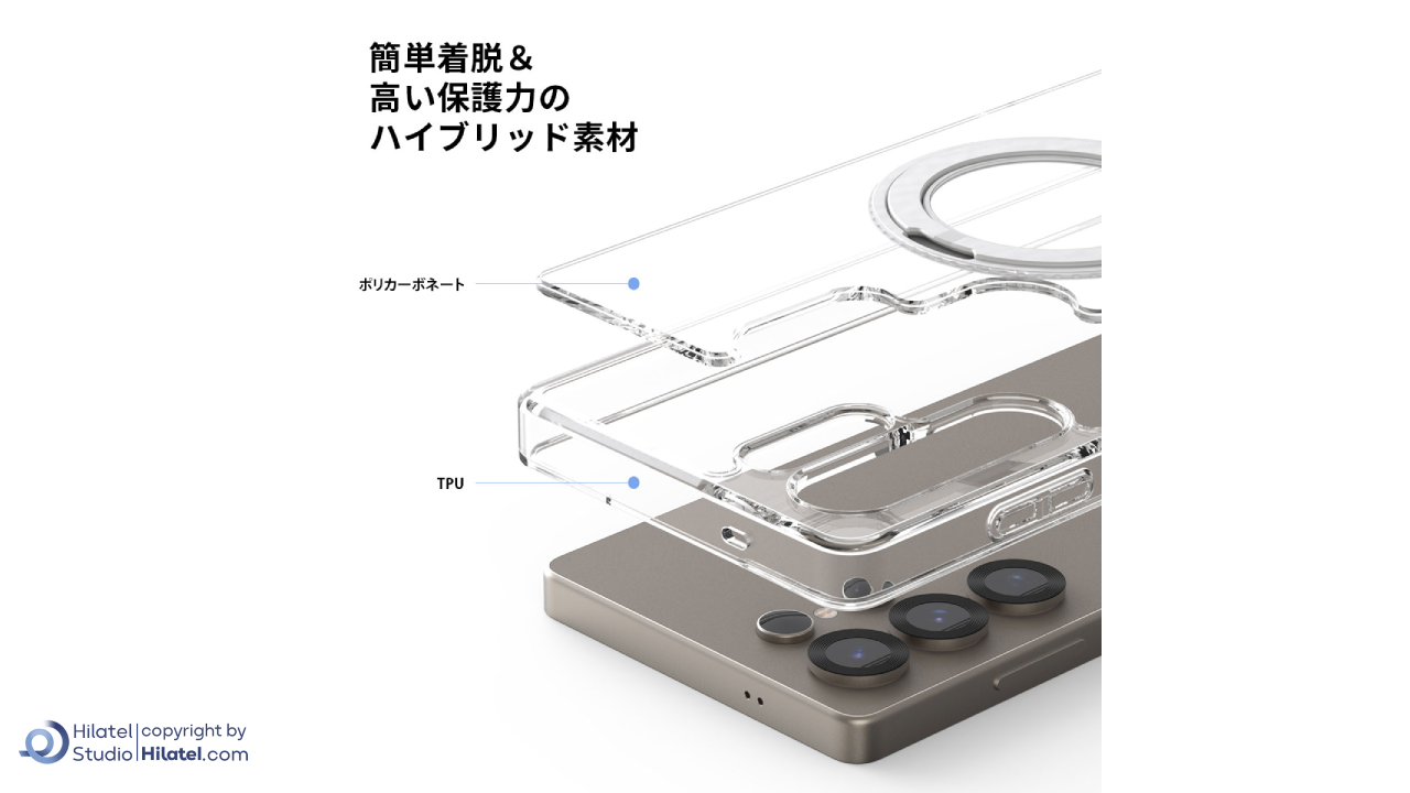 لبه های قاب از TPU ساخته شده اند که انعطاف پذیری لازم برای نصب راحت روی گوشی را فراهم می کند. این نوع ماده، نوعی پلاستیک شفاف بوده که در صنعت استفاده می شود و خاصیت کشسانی دارد، همچنین خاصیت ضد لغزش داشته و مانع از سر خوردن گوشی هنگام در دست گرفتن می شود. قاب دارای طراحی برجسته ای در قسمت لنز دوربین است تا آن را در برابر خط و خش و آسیب های احتمالی محافظت کند.