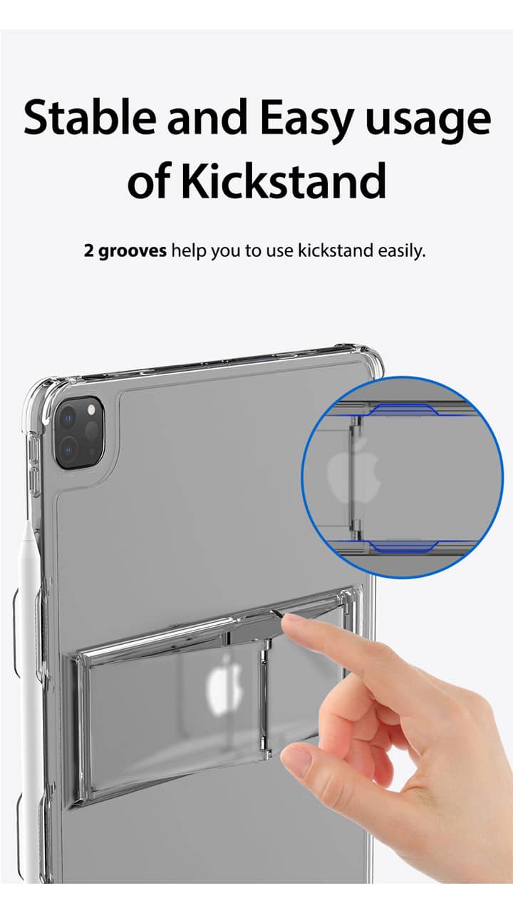 کاور آراری مدل Flexield SP مناسب برای تبلت اپل iPad Pro 11 پایه نگهدارنده دارد که در پشت قاب طراحی شده است و آیپد را به صورت افقی یا عمودی روی میز یا دیگر سطوح نگه می دارد. ارتفاع پایه نگهدارنده کاور آیپد 11 پرو در 4 سطح تنظیم می شود و در هر زاویه ای که مورد نظر کاربر باشد، محکم خواهد شد.