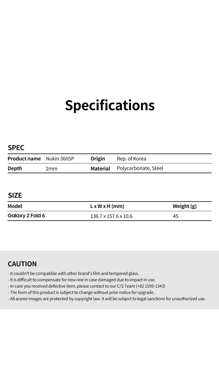 مشخصات Araree Nukin 360 SP Galaxy Z Fold6