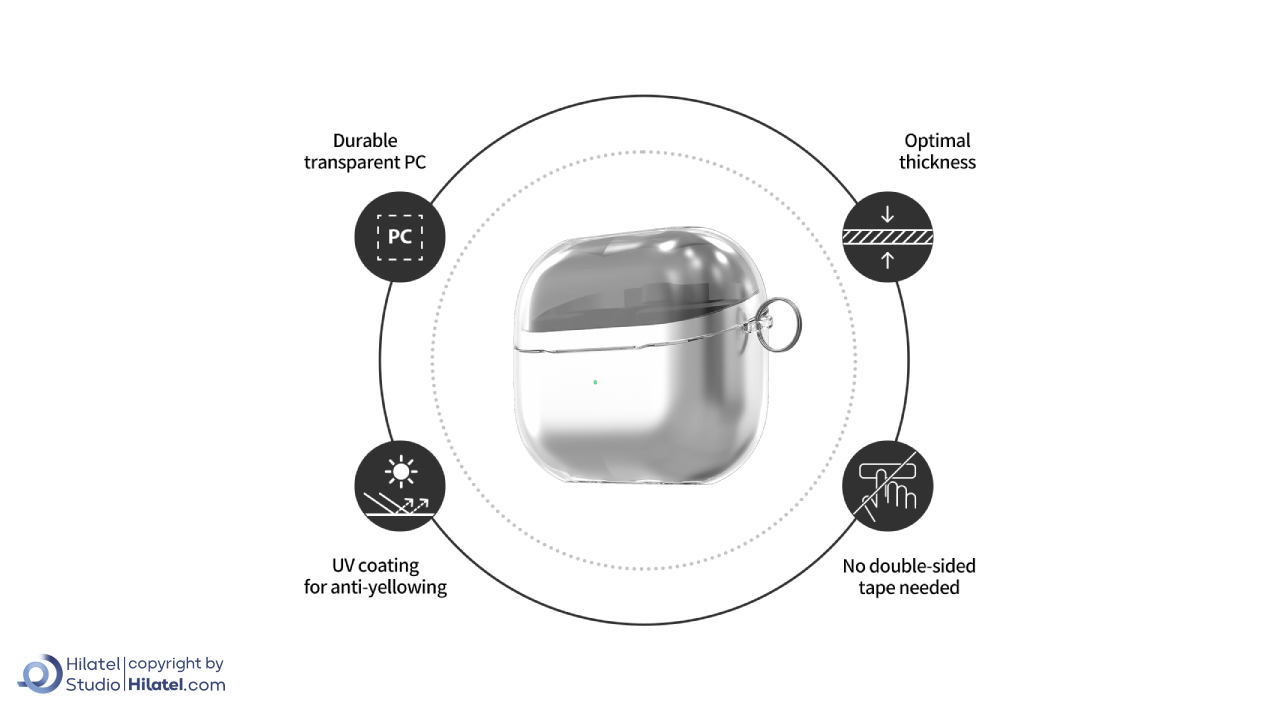این قاب ساده و مدرن است و برای کاربرانی که به دنبال یک محافظ مؤثر هستند، گزینه ای مناسب به شمار می رود. بدون نیاز به چسب های اضافی، نصب و جداسازی آن آسان است و شفافیت دائمی این قاب، رنگ اصلی هندزفری را حفظ می کند.