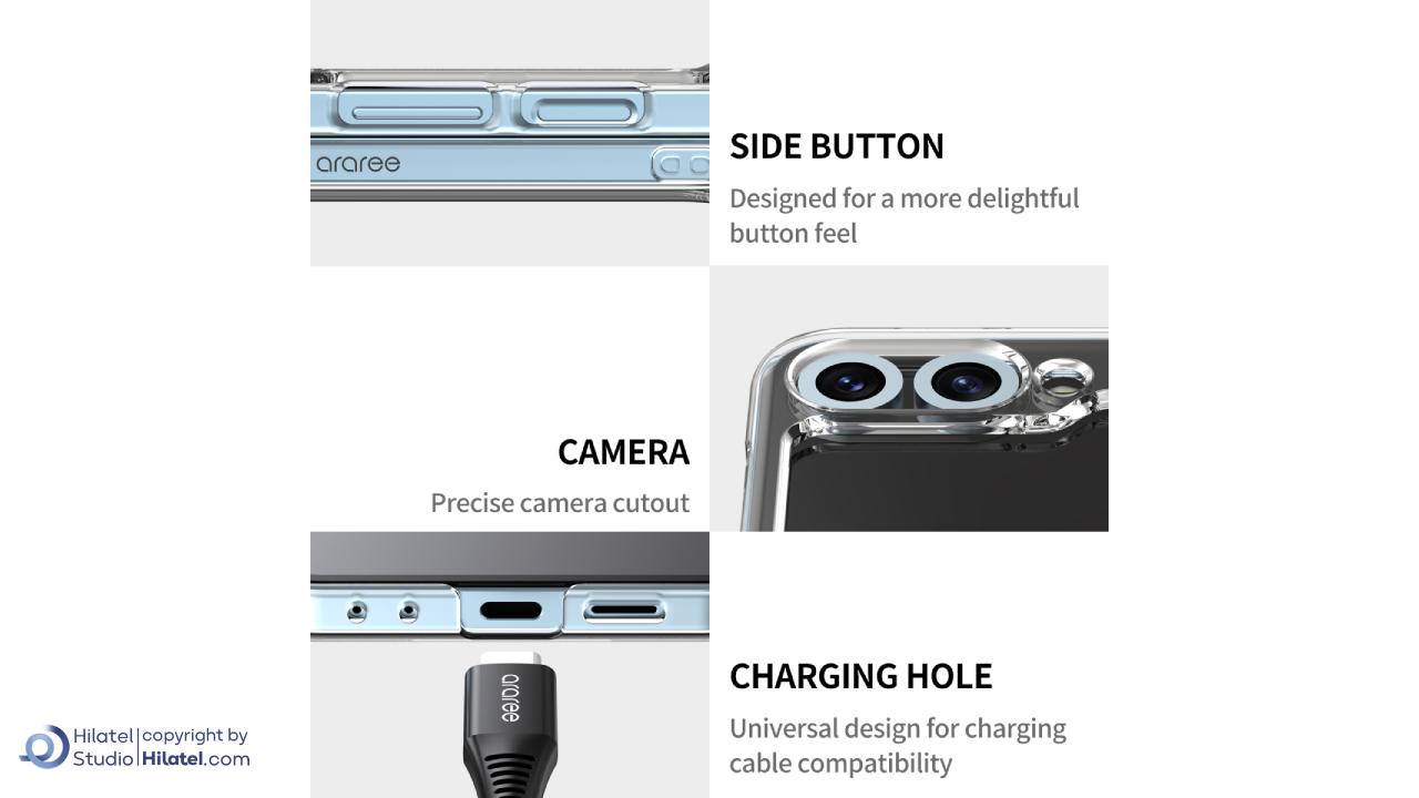 طراحی شفاف (transparent / clear) ظاهر اصلی گوشی را نشان می دهد و برای افرادی که به کاورهای رنگی یا طرح دار علاقه ندارند، مناسب است. لبه های قاب کمی بالاتر از سطح نمایشگر و دوربین قرار دارند. این اختلاف سطح باعث می شود هنگام قرار دادن گوشی روی میز یا سطوح سخت، تماس مستقیم لنز یا صفحه نمایش با سطح کاهش یابد و احتمال ایجاد خراش کمتر شود.