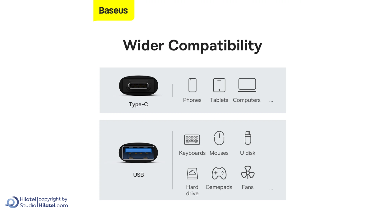 مبدل OTG تایپ سی باسئوس مدل ZJJQ00001 با اکثر دستگاه های دارای پورت USB Type-C که از قابلیت OTG پشتیبانی می کنند، سازگار است و می تواند برای اتصال انواع لوازم جانبی USB مورد استفاده قرار گیرد. خرید این محصول با توجه به قیمت و قابلیت های آن ارزش خرید مناسبی دارد.