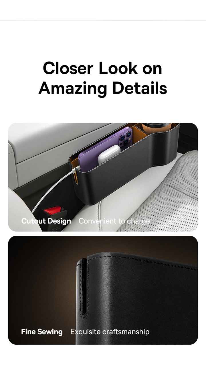 - جعبه نظم دهنده خودرو باسئوس مدل OrganizeFun BS-CG018 از جنس پلاستیک و چرم مصنوعی است. قسمت داخلی این جعبه از جنس جیر ساخته شده تا به وسایل شما آسیبی نرساند.