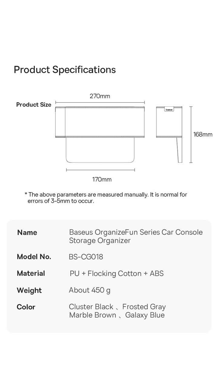 | مشخصات جعبه نظم دهنده خودرو باسئوس مدل OrganizeFun BS-CG018 | |