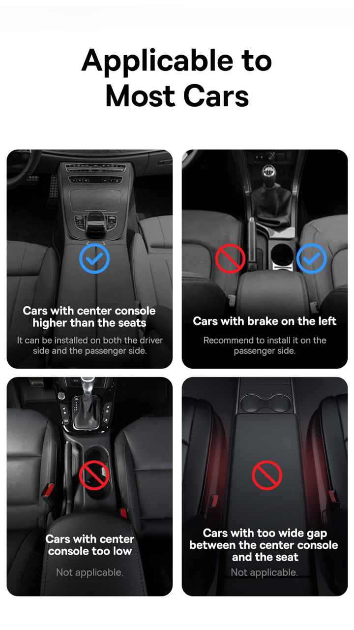 - این جعبه نظم دهنده در فضای بین دو صندلی جلو ماشین قرار می گیرد و به وسیله پایه های منعطف به راحتی قابل نصب می باشد.