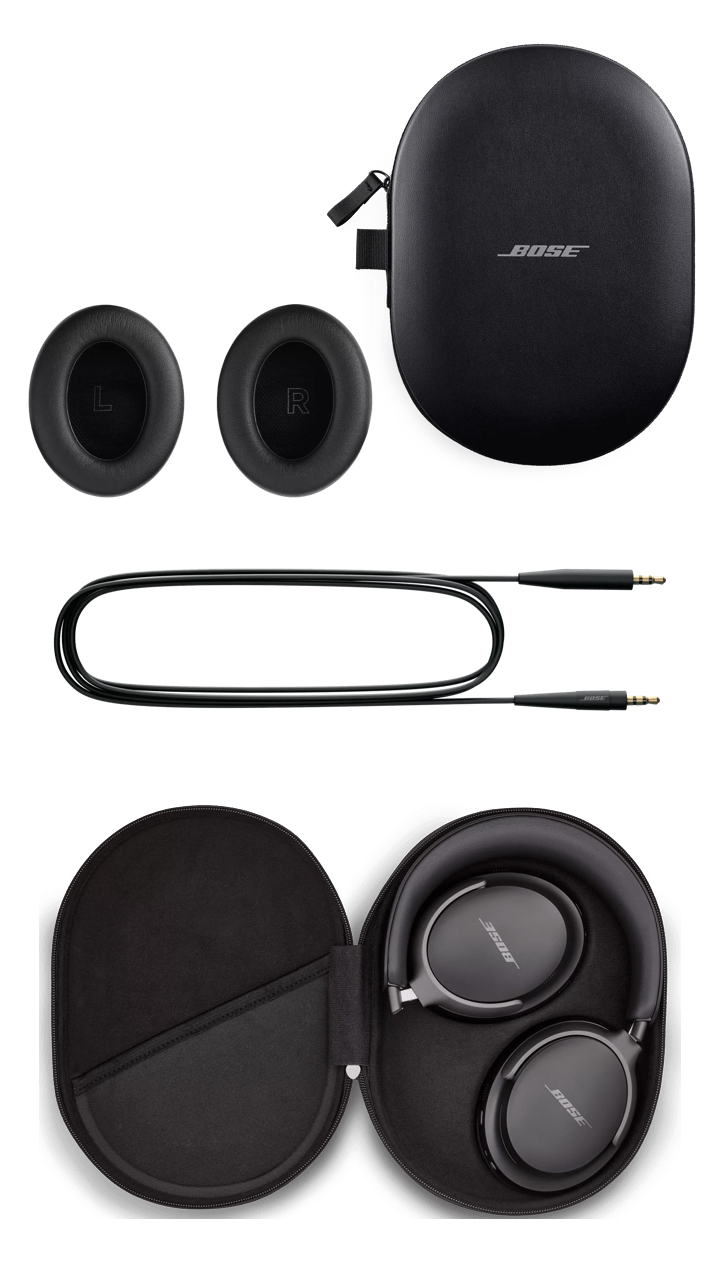 در بسته بندی Bose Quietcomfort Ultra Hedphone، علاوه بر خود هدفون، لوازم جانبی مفیدی نیز ارائه می شود. این لوازم شامل یک کیف حمل با کیفیت، کابل شارژ USB-C، کابل صوتی 3.5 میلی متری برای اتصال با سیم و یک آداپتور است. این لوازم جانبی امکان استفاده از هدفون را در شرایط مختلف فراهم می کنند.