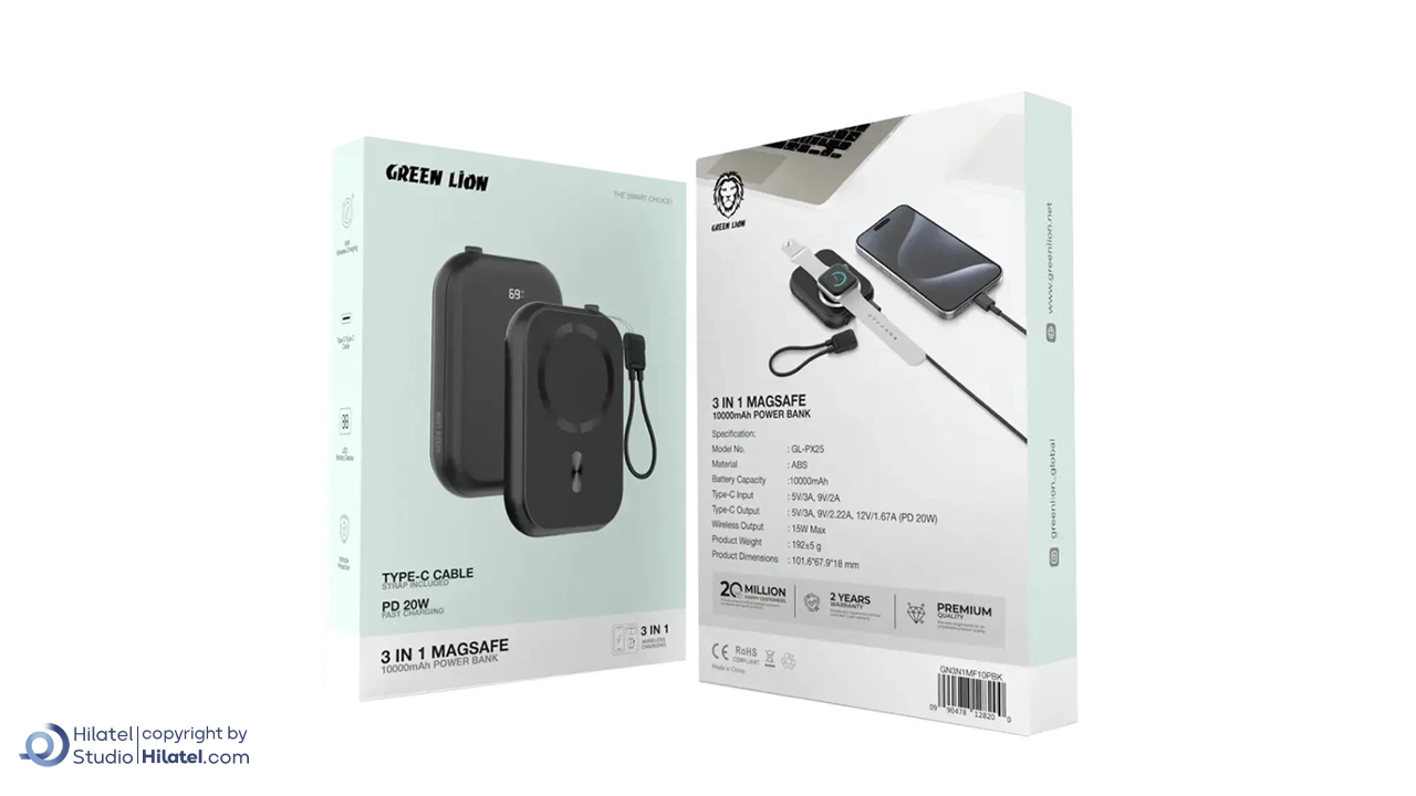 Green Lion 3 IN 1 Magsafe 10000mAh Power Bank PX25
