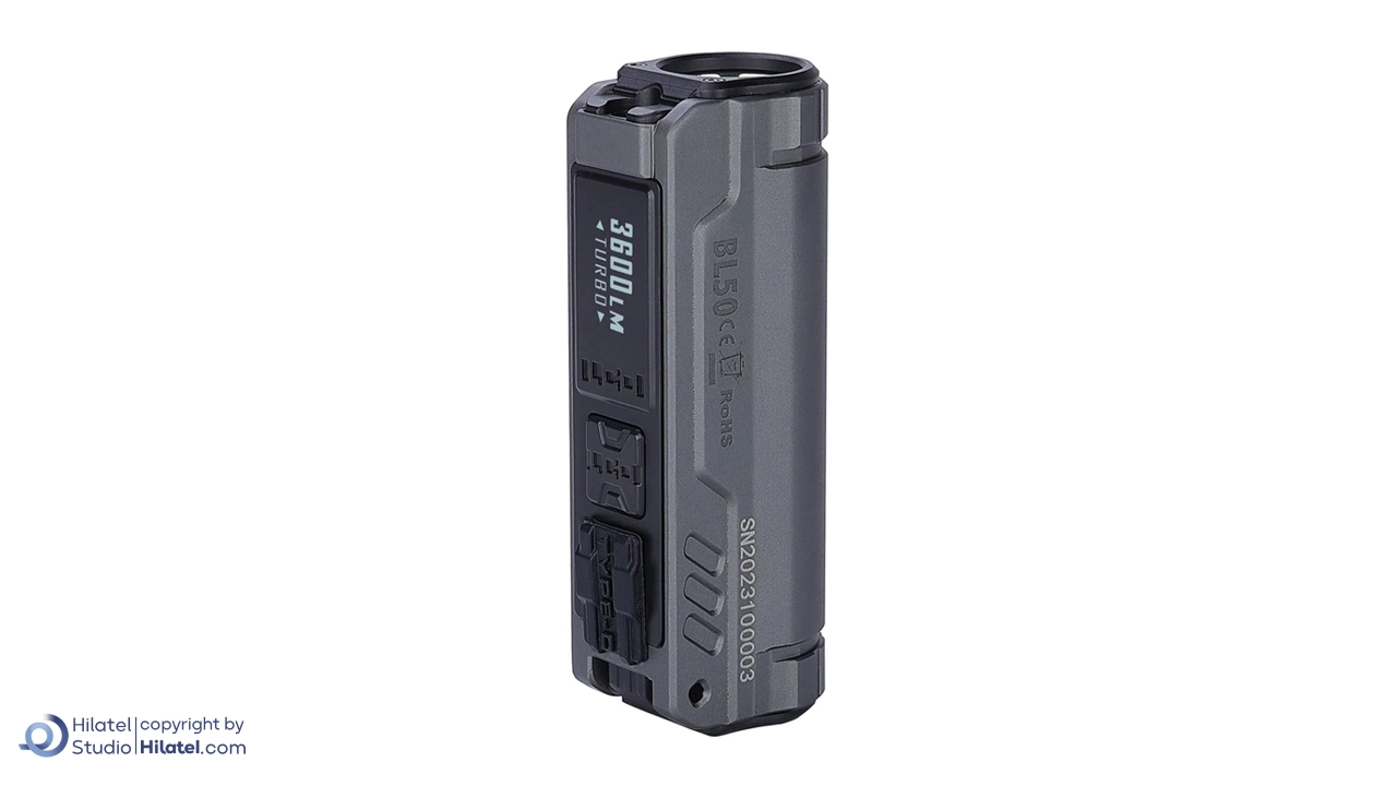 در بخش میانی بدنه چراغ قوه شارژی Imalent مدل BL50، یک نمایشگر OLED قرار دارد که وضعیت باتری یا سطح روشنایی را نشان می دهد. دمای دستگاه یا قفل و باز بودن چراغ از دیگر اطلاعاتی هستند که روی OLED نمایش داده می شوند.