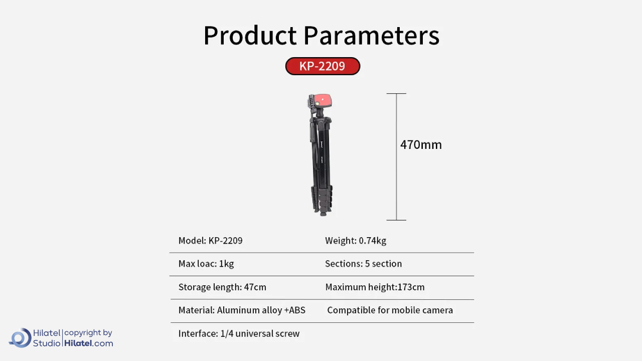 سه پایه دوربین و موبایل جی ماری مدل KP-2209 با وزن ۷۴۰ گرم، سبک و قابل حمل طراحی شده است. این محصول در حالت بسته فقط ۴۶۰ میلی متر (46 سانتی متر) ارتفاع دارد و به راحتی در کیف یا کوله پشتی قرار می گیرد. در حالت باز، ارتفاع سه پایه جی ماری مدل KP-2209 به ۱۷۳۰ میلی متر (173 سانتی متر) می رسد که برای عکاسی و فیلم برداری در موقعیت های مختلف مناسب است.