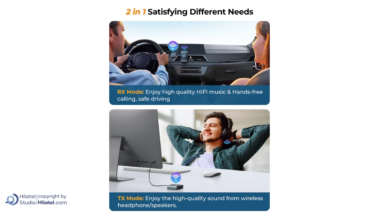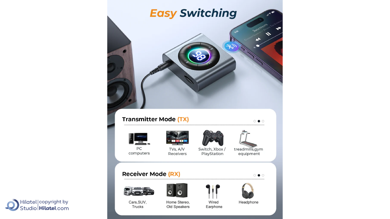 این دستگاه در حالت فرستنده، صدای بی سیم دستگاه هایی مثل تلویزیون یا لپ تاپ را به هدفون یا اسپیکر بلوتوثی منتقل می کند. همچنین در حالت گیرنده، می تواند صدای دستگاه های بلوتوثی را به سیستم های صوتی فاقد بلوتوث منتقل کند.