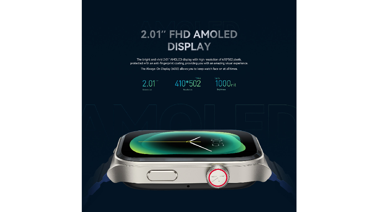 صفحه نمایش این محصول نیز در ابعاد 2.01 اینچ طراحی شده و وزنی 55 گرمی دارد. بند ساعت نیز جنسی از سیلیکون دارد و به صورت مگنتی بسته می شود. صفحه نمایش ساعت هوشمند کیسلکت مدل Ks 2 از نوع FHD AMOLED Super Dynamin است و رزولوشن آن 410*502 می باشد.