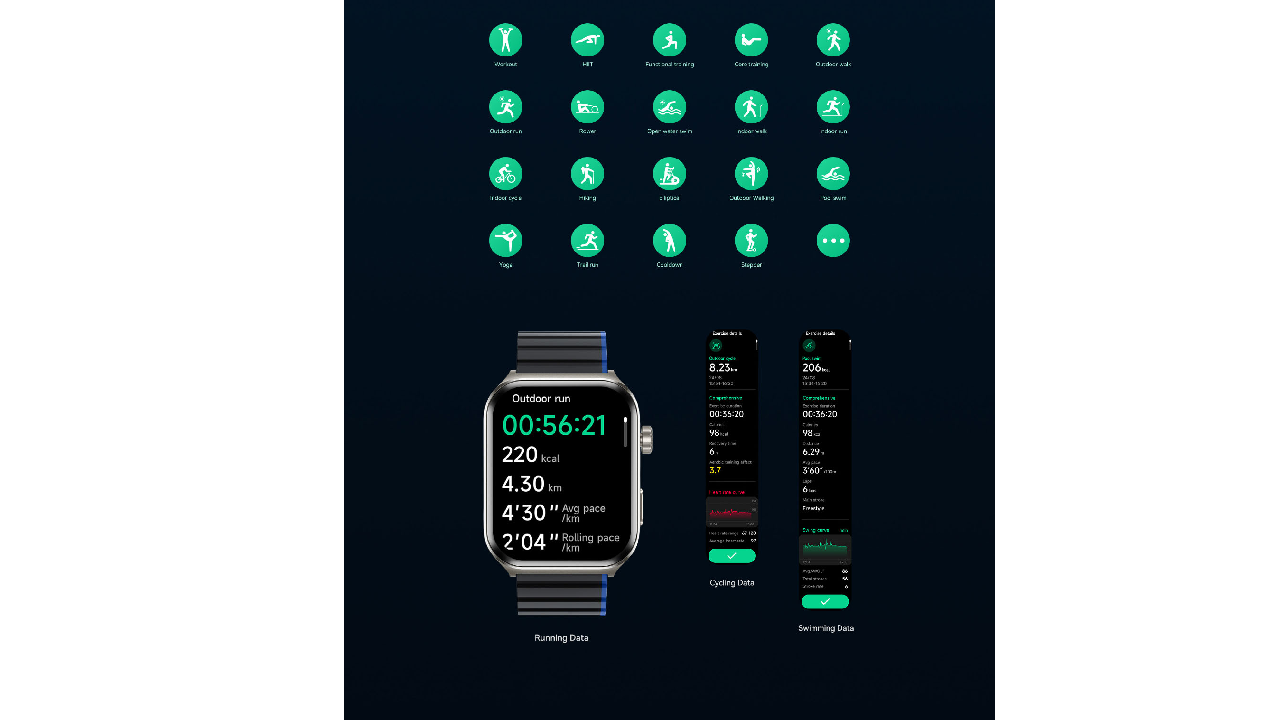 در این ساعت از سنسورهای متعددی برای ردیابی سلامتی استفاده شده است. این ساعت می تواند ضربان قلب، اکسیژن خون، میزان استرس و ... را بررسی کند. دقت سنسورهای سلامتی این محصول نسبت به نسل پیشین 7 برابر شده است. همچنین این ساعت از 100 حالت ورزشی مختلف مانند دویدن، دوچرخه سواری و ... نیز پشتیبانی می کند و پیشرفت ورزشی را به شما نمایش می دهد.