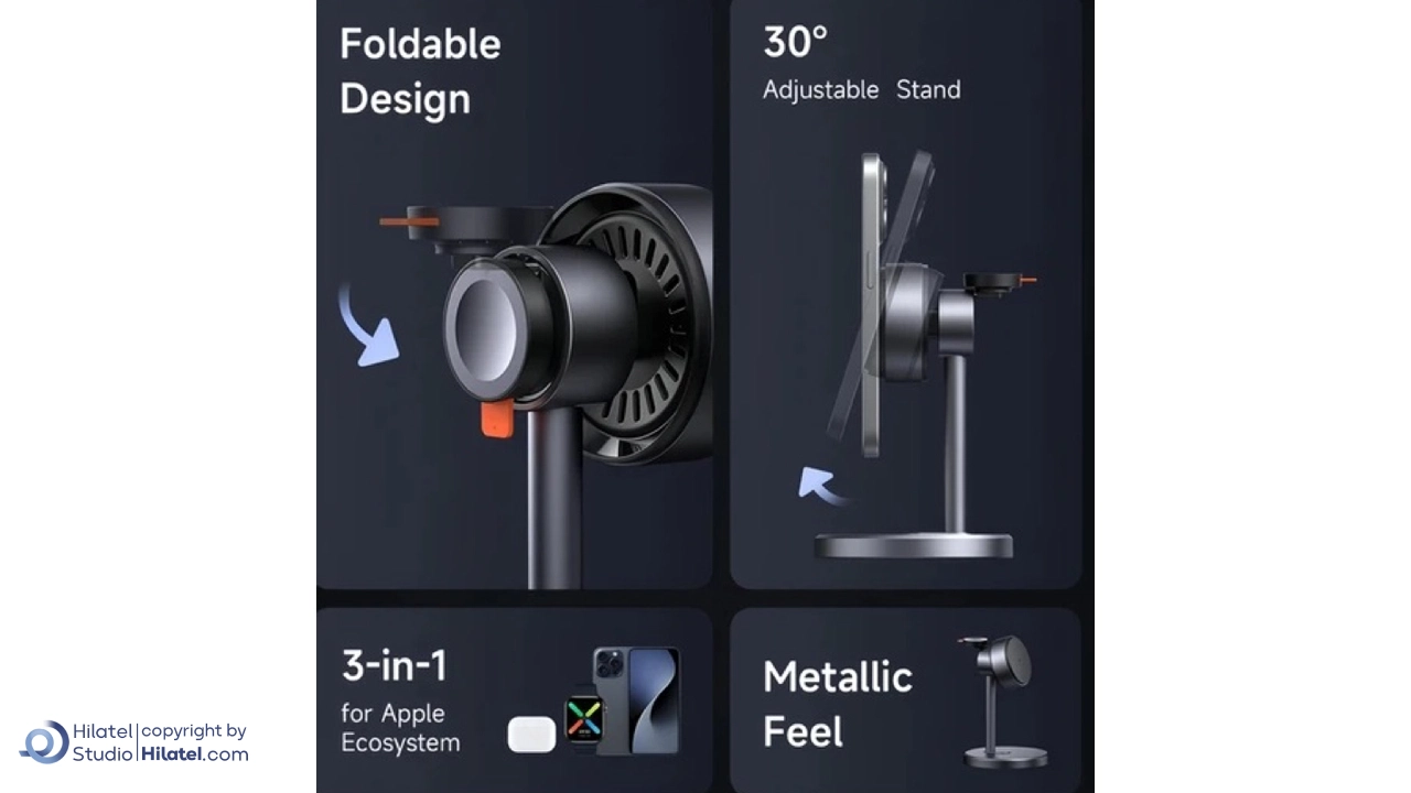 دارای قابلیت شارژر بی سیم سریع، پایه نگهدارنده ایمن و زاویه قابل تنظیم