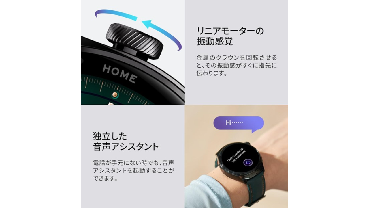 - کنترل موسیقی، آلارم، وضعیت هوا، ساعت جهانی، جستجوی ساعت هوشمند، قطب نما