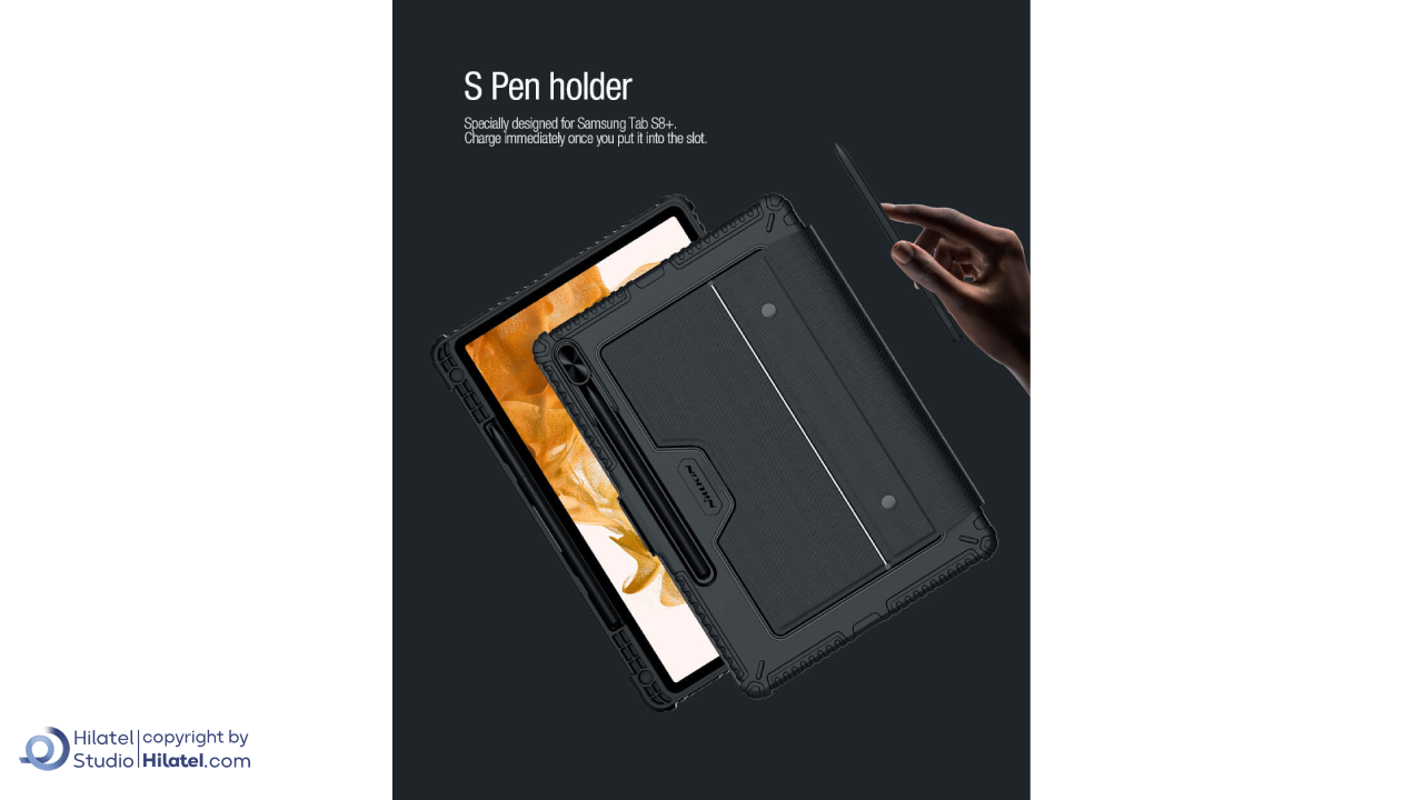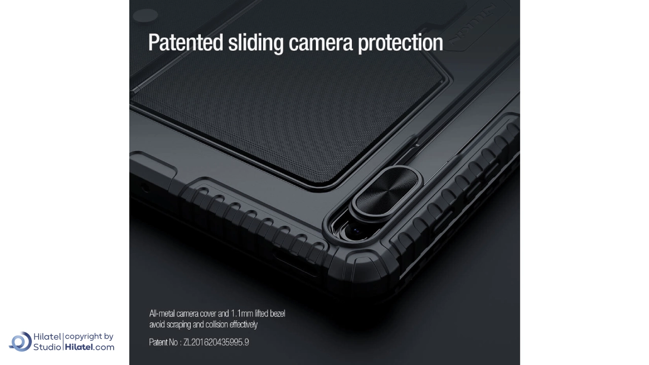 این مدل کیف کیبورد دار دارای قاب مستحکمی است که از دوربین آیپد و تبلت تان در برابر سایش و خراش نیز محافظت می کند. بنابراین، برای محافظت هر چه بیشتر از دوربین تبلت سامسونگ می توانید از این مدل کیف برند نیلکین استفاده کنید. در بخش زیرین محافظ دوربین، مکانی تعبیه شده است که می توانید قلم هوشمند را در آنجا قرار دهید. با استفاده از این قلم هوشمند، کار کردن با تبلت برای شما آسان تر خواهد بود.