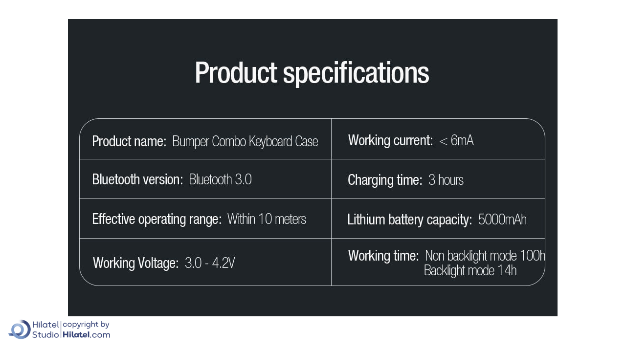 این مدل کیف کیبورد دار مجهز به باتری قدرتمندی است که توانایی نگهداری شارژ تا مدت طولانی را در طول روز دارد. باتری قدرتمند این کیف کیبورد دار ظرف مدت 3 ساعت به صورت کامل شارژ می شود. همچنین، این مدل کیف از مواد اولیه باکیفیتی ساخته شده است و در برابر ضربه و خراش مقاومت زیادی دارد.