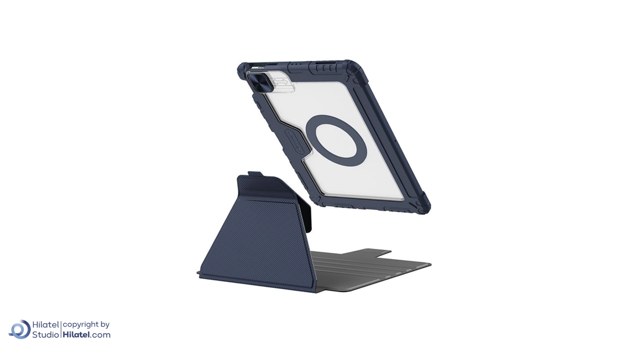 زمانی که کاور جلویی کیف کلاسوری نیلکین مدل Bumper Snapsafe مناسب iPad Air 10.9 2020 جدا می شود، قاب پشتی به سطوح فلزی متصل می شود. این ویژگی می تواند برای قرار دادن آیپد روی سطوح خاص مفید باشد.