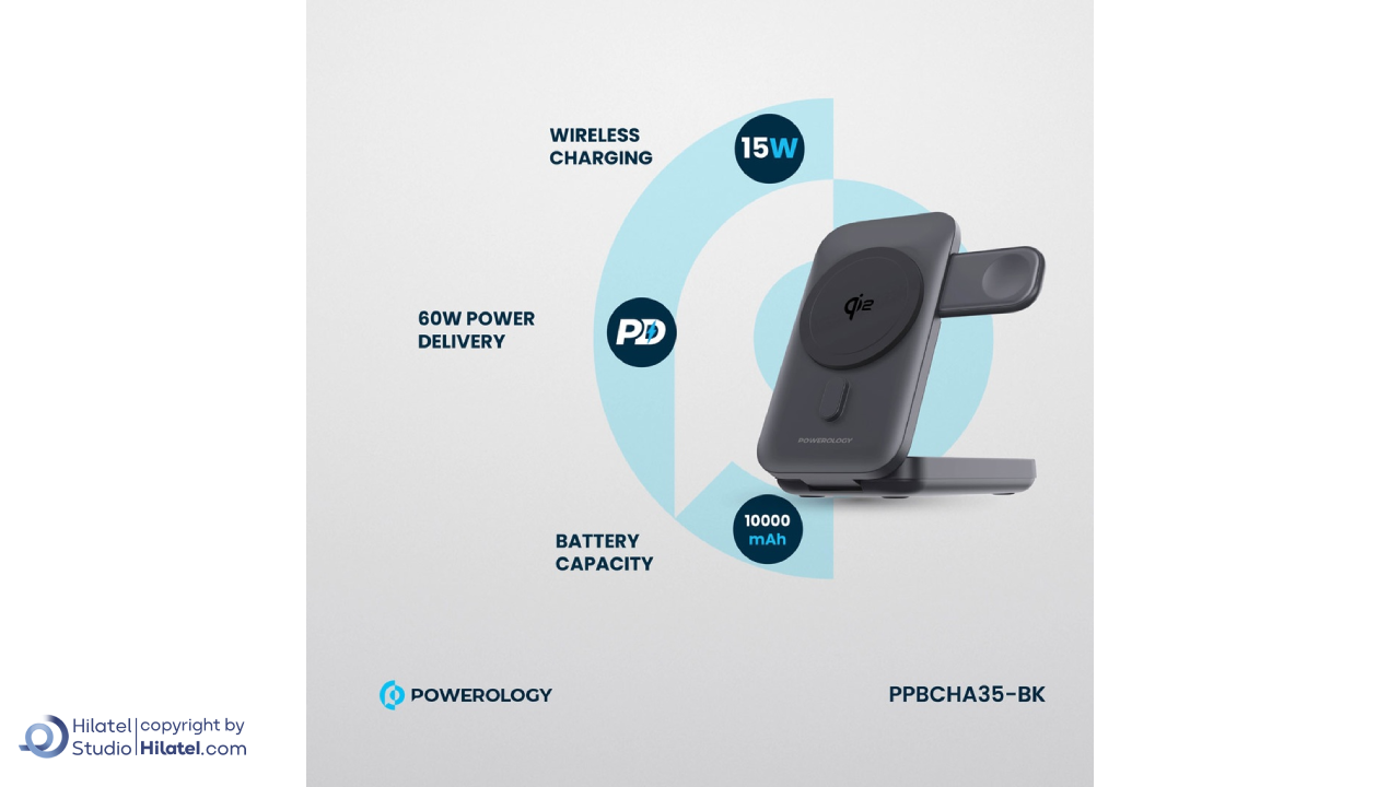پاوربانک و شارژر وایرلس 15 وات دو کاره پاورولوژی مدل PP035