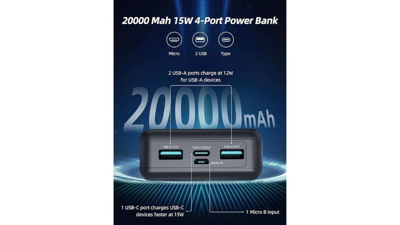 2 خروجی USB و 1 پورت Type-C و 1 درگاه Micro USB |