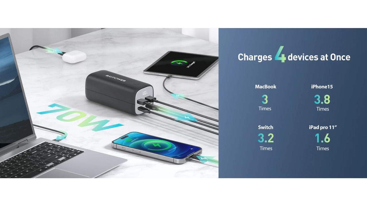 Ravpower PD pioneer 20000mAh 70W 4-Port Power Bank RP-PB208 Pro