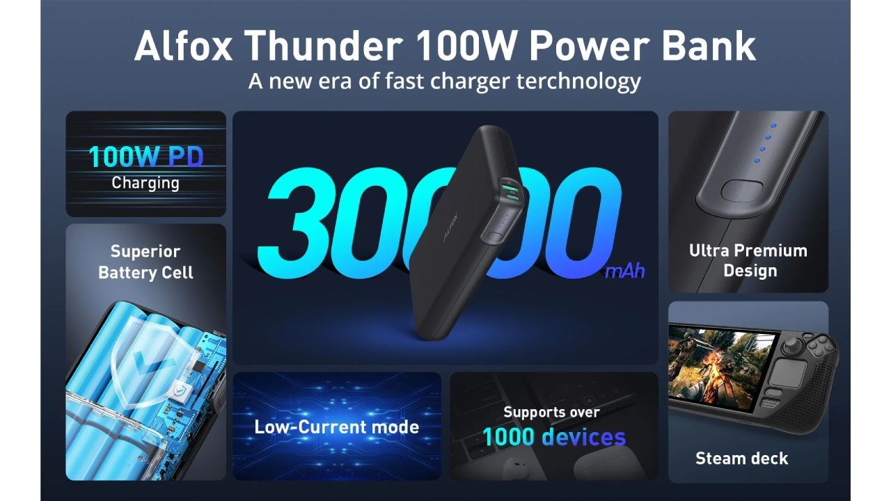 با توان خروجی 100 وات و دو درگاه USB-C و USB-A، این پاوربانک می تواند دو دستگاه را به طور همزمان با حداکثر سرعت شارژ کند. همچنین، با ظرفیت بالای 30000 میلی آمپر ساعت، می تواند چندین مرتبه گوشی هوشمند، تبلت یا لپ تاپ را شارژ کند (بسته به ظرفیت باتری هر دستگاه).