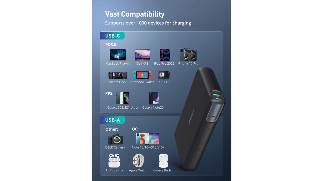 USB-C PD 3.0، USB-A QC 3.0 |