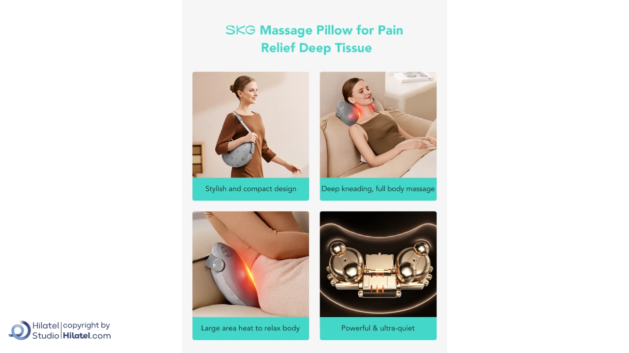 محصولات موجود در فروشگاه آنلاین هیلاتل تضمین اصالت کالا دارند. اگر به دنبال خرید یک ماساژور کاربردی با قابلیت های متنوع و طراحی حرفه ای هستید، می توانید ماساژور چند کاره SKG مدل T1-2 PRO را از طریق وب سایت هیلاتل سفارش دهید.