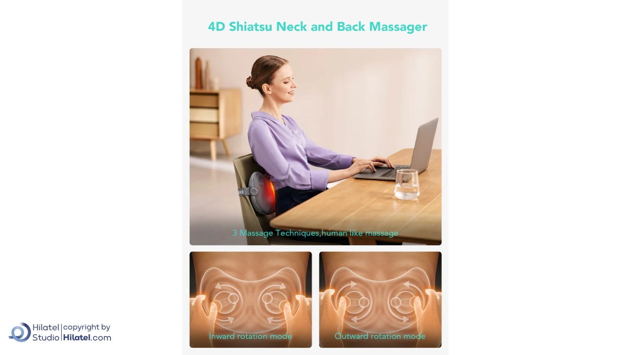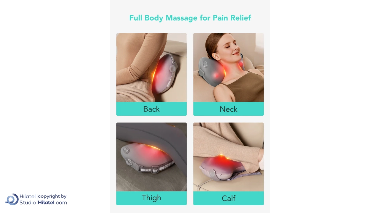 سایر ویژگی هامجهز به گرههای ماساژ 4 بعدی / حاموش شدن خودکار پس از ۱۵ دقیقه / بیسیم و سبک / ماساژ گردن، کمر، شانهها، پاها و موارد دیگر / موتور قدرتمند و کم صدا
