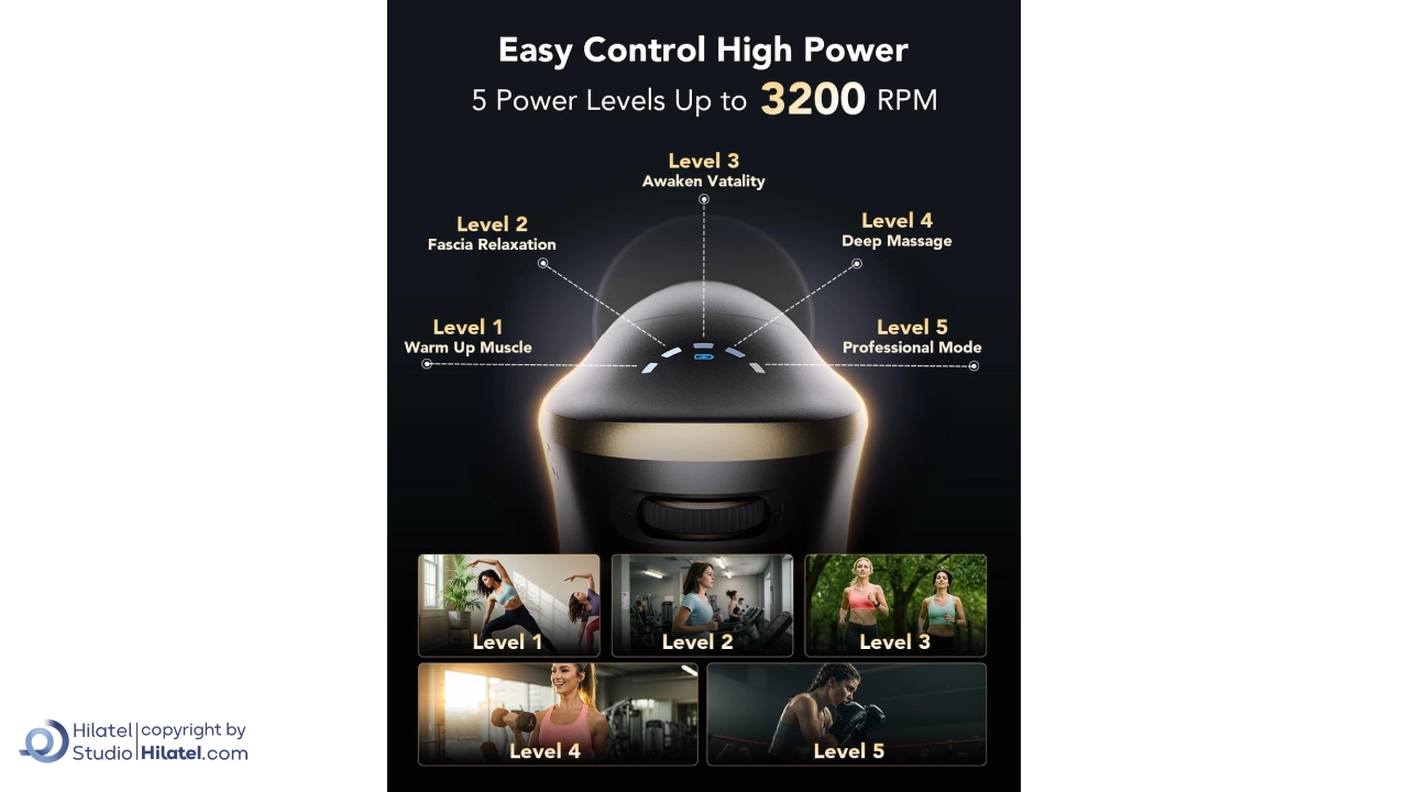 این ماساژور تفنگی به 5 سطح سرعت مختلف مجهز شده است که مناسب برای ماساژ آرام یا ضربات قوی تر می باشد.