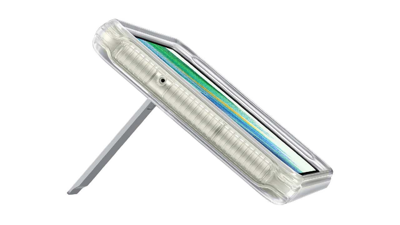 - طراحی کاربردی: استند کاور شفاف سامسونگ، طراحی بسیار کاربردی دارد و به شما اجازه می دهد، برای تماشای ویدئو یا تماس تلفنی گوشی خود را روی سطوح صاف قرار دهید و زاویه دلخواه را تنظیم کنید.