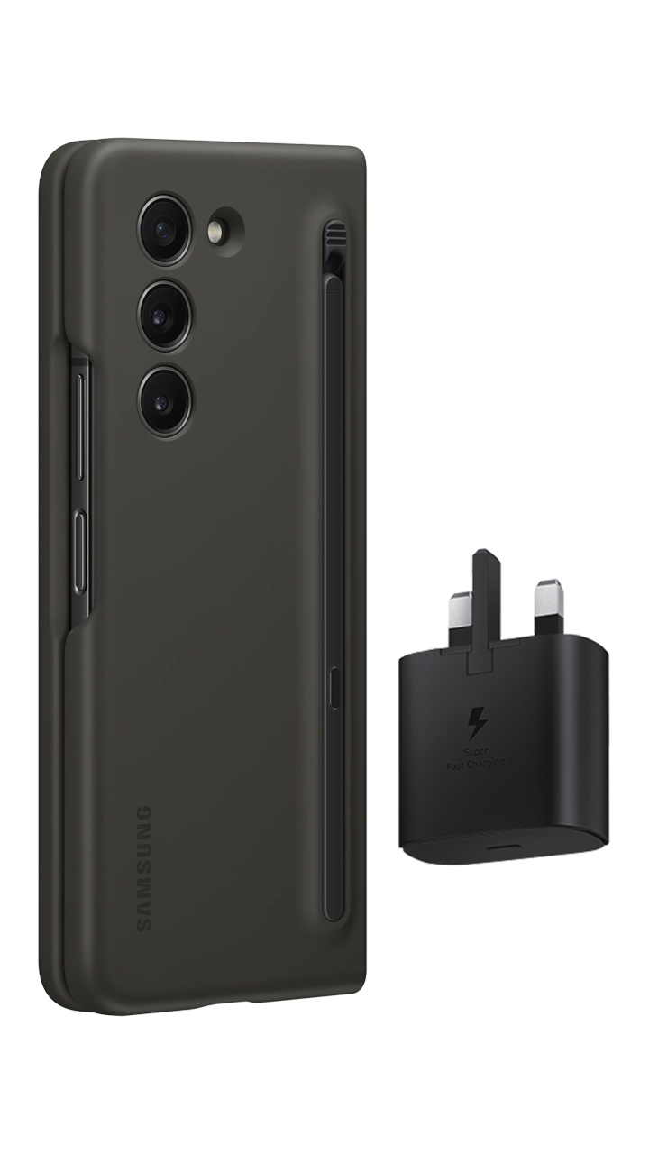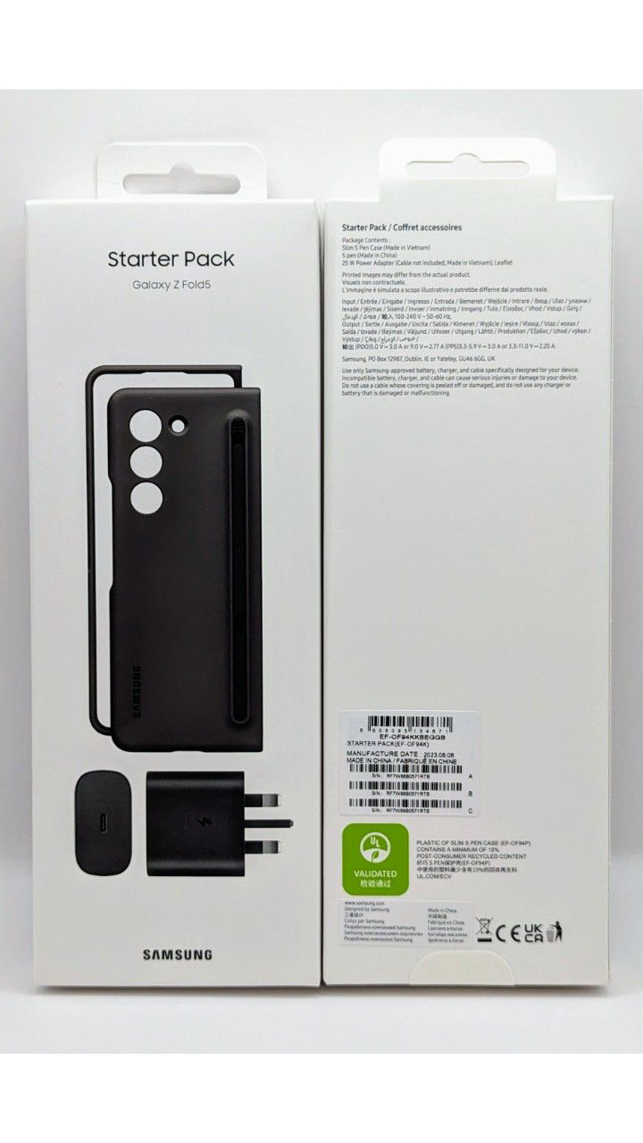 کاور سامسونگ Starter Pack EF-OF94K سامسونگ Galaxy Z Fold 5 یک محصول کاربردی و خارق العاده از سامسونگ است که چند لوازم جانبی پر مصرف و کار بردی را در یک بسته قرار داده است، این بسته شامل آداپتور برق برای شارژ فوق سریع با توان 25 وات و قاب Slim S Pen می باشد.