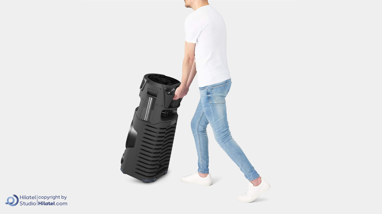 بدنه مقاوم، پنل لمسی ضدآب و چرخ هایی در قسمت زیرین دستگاه باعث می شود بتوان آن را به راحتی جابجا کرد و در محیط های گوناگون مورد استفاده قرار داد. این موارد در طراحی این اسپیکر هوشمندانه و کاربردی لحاظ شده اند.