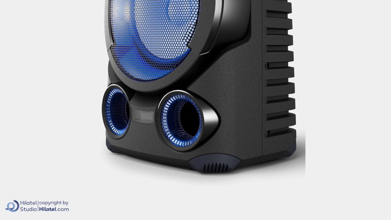 طراحی خاص این اسپیکر شامل نورپردازی رنگی و بلندگوهای چندجهته است که باعث می شود صدا از تمام جهات پخش شود و تجربه ای سه بعدی ایجاد کند. از نظر بصری، نورپردازی های تعبیه شده در دستگاه با ریتم موسیقی هماهنگ می شوند و فضای جشن را واقعی تر می کنند.