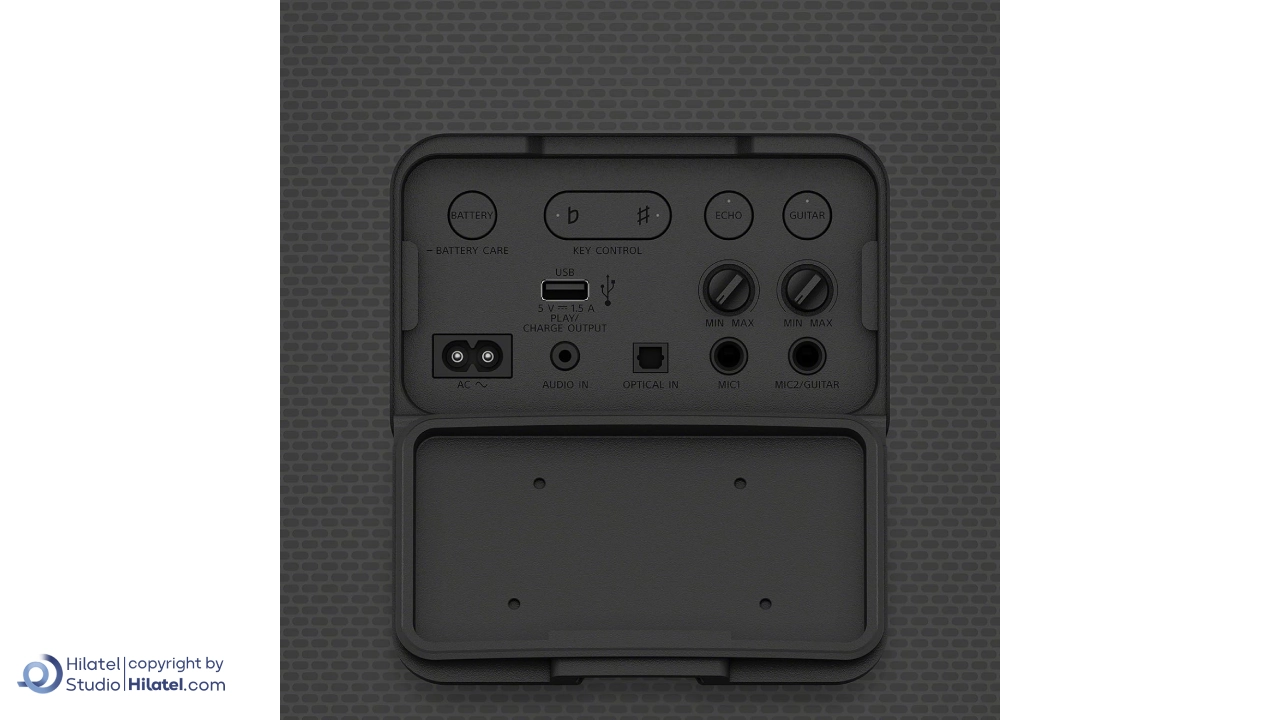 USB-A (پخش و شارژ دستگاه)، ورودی AUX 3.5 mm، ورودی Optical، MIC، GUITAR |