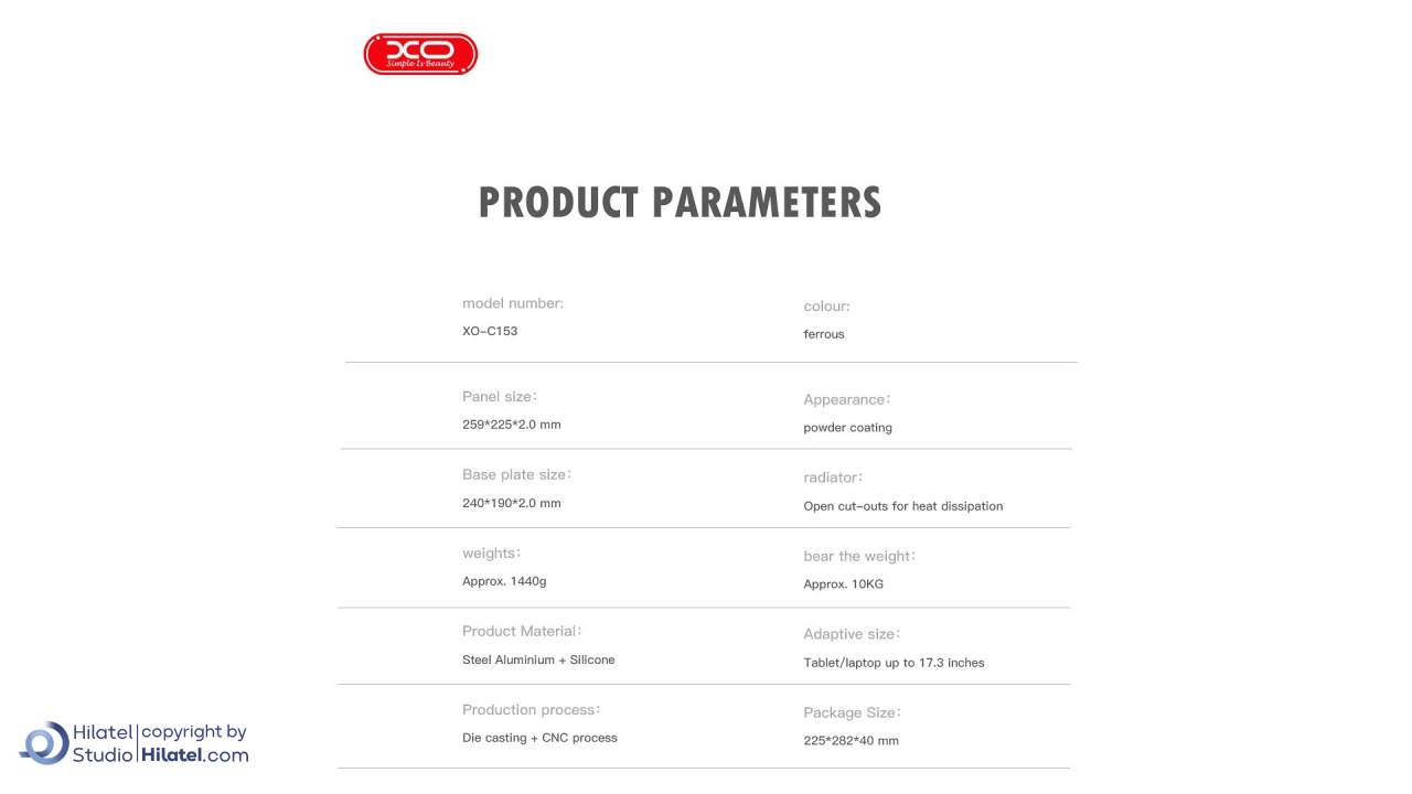 مشخصات فنی پایه نگهدارنده لپ تاپ مدل XO-C153