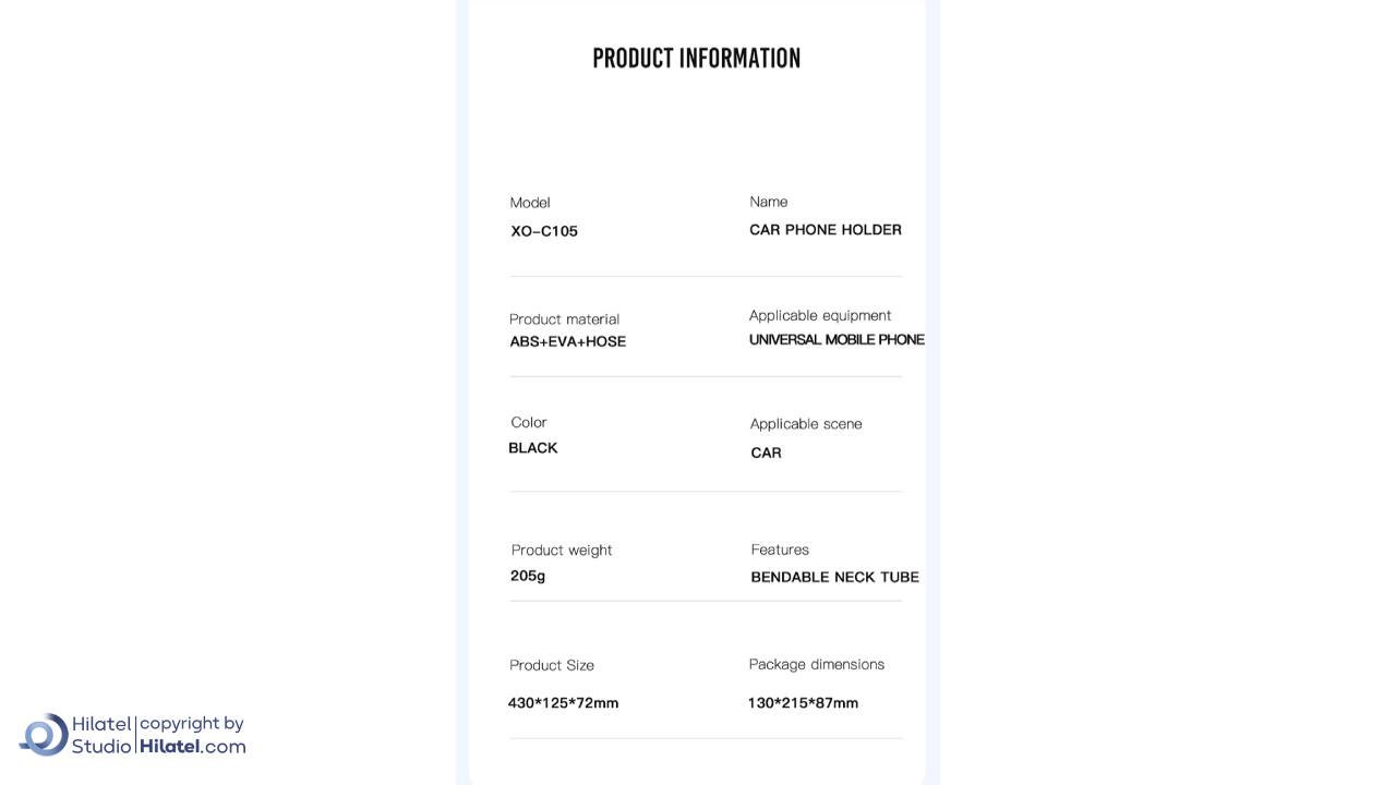 مشخصات هولدر موبایل مخصوص جالیوانی خودرو XO مدل C105 |