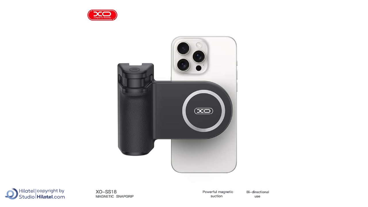 گیمبال مگنتی و هولدر موبایل رومیزی ایکس او مدل XO-SS18 محصولی طراحی شده برای ثابت نگه داشتن گوشی است. این دستگاه بدنه ای سبک و فشرده دارد و به دو روش مغناطیس (قابلیت MagSafe) و بلوتوث (برای عملکرد مستقل شاتر) به گوشی متصل می شود.
