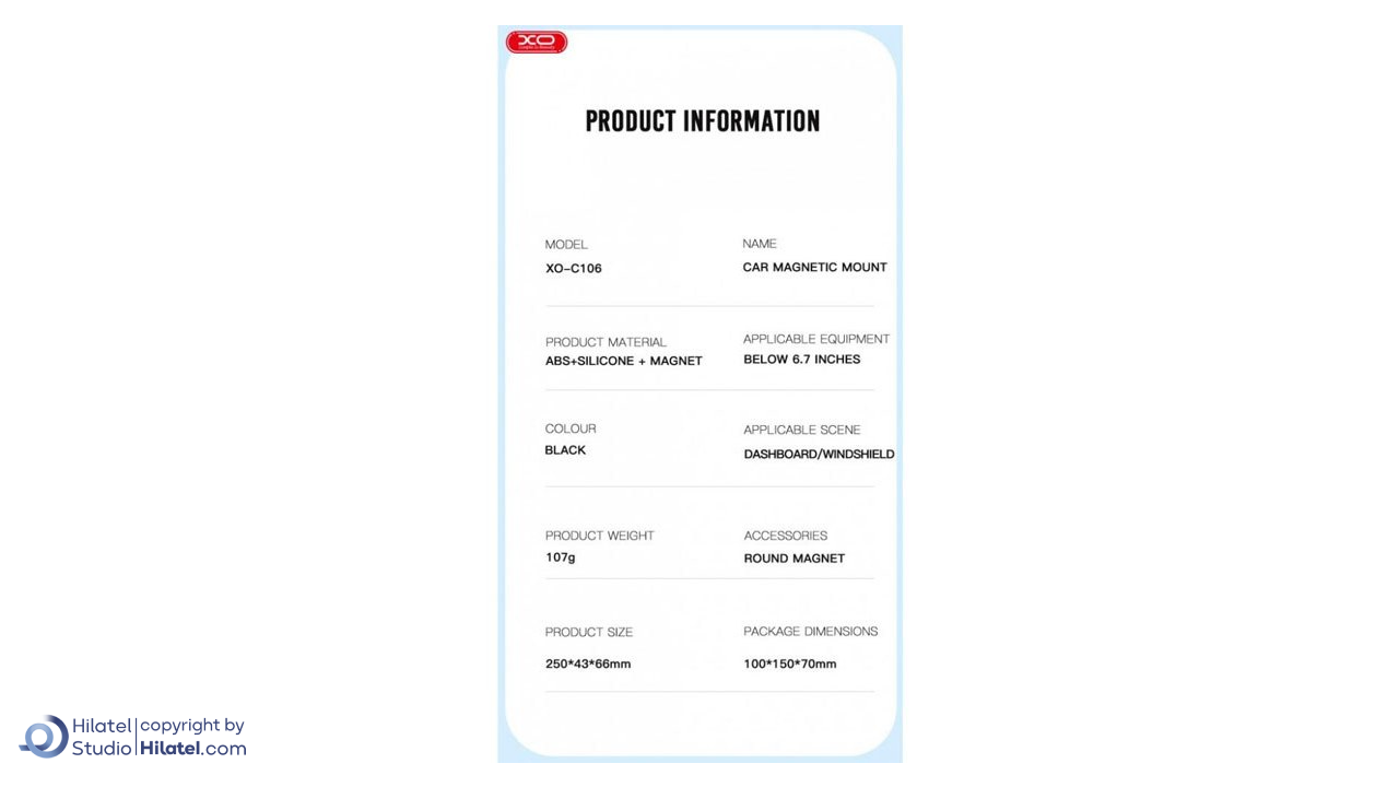 مشخصات فنی هولدر موبایل ایکس او مدل XO-C106 |