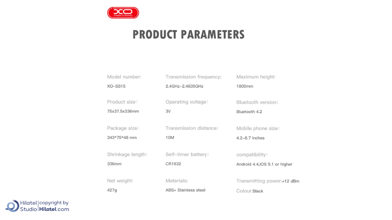 مشخصات مونوپاد و سه پایه سلفی گوشی ایکس او XO-SS15 |