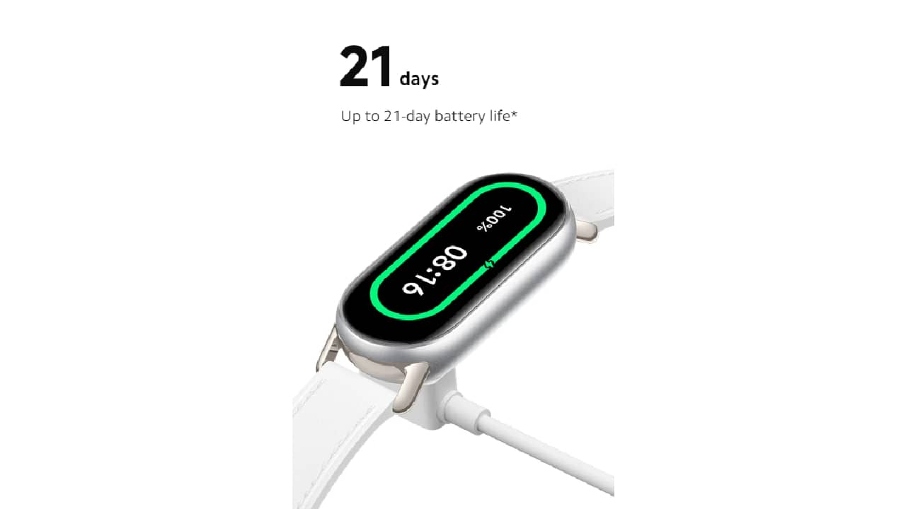 یکی از نقاط قوت اصلی مچ بند هوشمند شیائومی مدل Smart Band 9 (global) ، عمر باتری فوقالعاده آن است. این دستبند هوشمند مجهز به یک باتری 233 میلی آمپر ساعتی است که نسبت به نسل قبلی افزایش ظرفیت داشته است. طبق ادعای شیائومی، مچ بند هوشمند شیائومی مدل Smart Band 9 (global) می تواند با یک بار شارژ کامل تا 21 روز دوام بیاورد. البته این میزان شارژدهی بسته به نحوه استفاده و فعال بودن ویژگی های مختلف می تواند متغیر باشد.