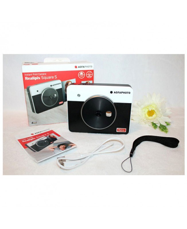 دوربین چاپ سریع Realipix Square S برند آگفافوتو با تراکم پیکسلی 300 dpi و سایز کاغذ 7.6 در 7.6 سانتیمتر که دارای یک دوربین با لنز 10 مگاپیکسلی با کیفیت و عالی می باشد و می تواند گزینه خوبی برای ثبت دقایق و خاطرات شما باشد با این تفاوت که بلافاصله پس از ثبت عکس امکان چاپ آن را دارید و حالت نوستالژِی را برای شما زنده می کند.همچنین با استفاده از اپلیکشین آگفافوتو که به وسیله فناوری بلوتوث به گوشی تلفن همراه شما متصل می شود میتوانید عکس هایی که در گالری تلفنتان وجود دارد را چاپ کنید، و برای گرفتن عکس و دیدن نتیجه قبل از چاپ یک ال سی دی 1.7 اینچی در اختیار دارید که پس از گرفتن عکس میتوانید چاپ شدن یا نشدن عکس را انتخاب کنید. این دوربین فیلتر ها و حالت های عکاسی مختلفی را در اختیار شما قرار میدهد و برای گرفتن عکس های سلفی یک آینه کنار لنز آن قرار گرفته است که موجب راحتی عکاسی میشود.