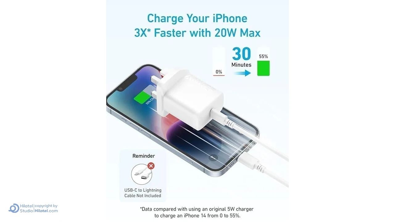 معرفی اداپتور 20 وات انکر مدل B2347 سه پین همراه با کابل