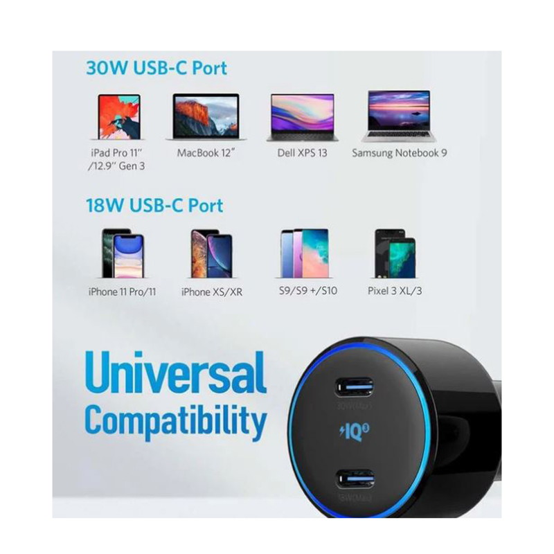 انکر یکی از محبوب ترین برند ها در زمینه تولید انواع مختلف لوازم جانبی و به طور کلی محصولات الکتریکی به حساب می آید، این برند در زمینه ارائه شارژر فندکی نیز تلاش کرده تا نیاز کاربران را به خوبی برطرف کند. شارژر فندکی Anker Power Drive Plus III Duo A2725 تولید شده توسط این برند است که شارژر فندکی قدرتمند به حساب می آید و دارای حداکثر توان خروجی 48 وات می باشد. این محصول دارای دو درگاه USB-C برای شارژ دستگاه های مد نظر شما است و یکی از درگاه ها تا حداکثر توان خروجی 30 وات را ارائه می کند که می تواند برای برخی لپتاپ ها مثل مک بوک سازگار با این توان نیز مناسب باشد و توان خروجی درگاه بعدی نیز تا حداکثر 18 وات می باشد. از نکات قابل توجه در این محصول می توان به توانای شارژ همزمان دو دستگاه توسط آن و همین طور بهره گیری از تکنولوژی Power IQ 3.0 اشاره کرد.