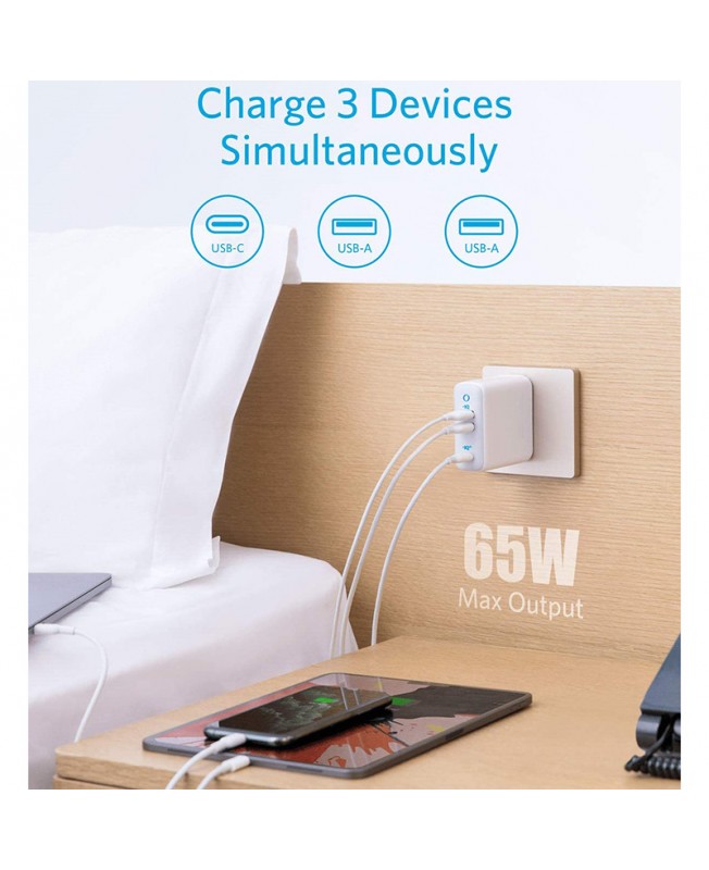 شارژر دیواری انکر مدل PowerCore III 3-Port 65W A2033 با بهره مندی از حداکثر توان مجموع 60 واتی و داشتن IQ در تشخیص شدت جریان و ولتاژ مورد نیاز دستگاه ها می تواند وسیله ای کاربردی و کارآمد برای تامیین انرژی دستگاه ها باشد.