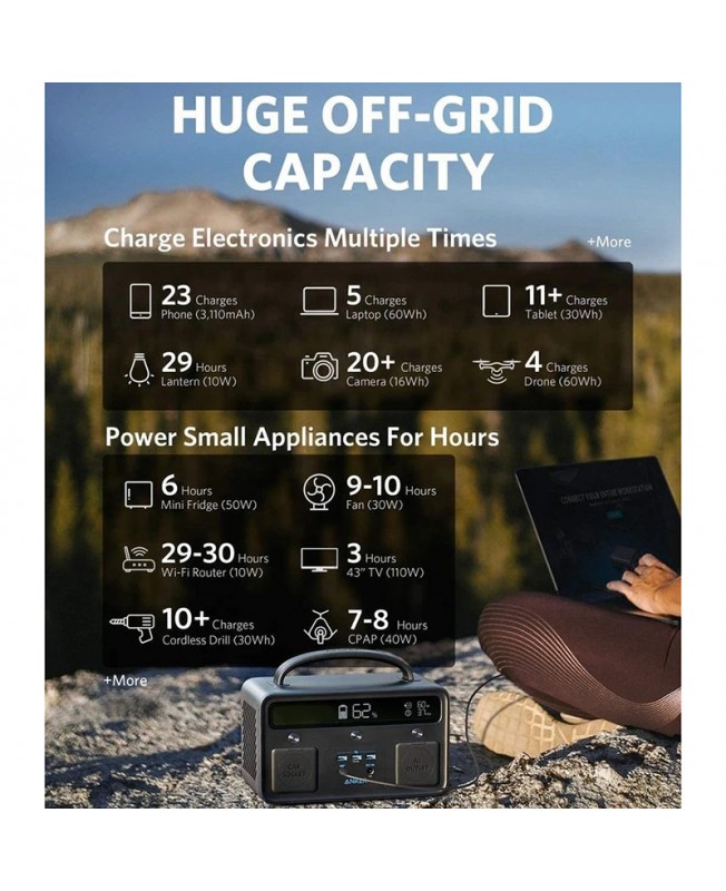 این محصول برند انکر برای کسانی قصد مسافرت به مکان های دور افتاده و یا کمپ را دارند می تواند گزینه مناسبی باشد و نیاز های آنها را تا حد قابل توجه ای پوشش دهد، البته در صورت اتمام شارژ خود دستگاه هم می توان از پنل های خورشیدی استفاده کرد.
