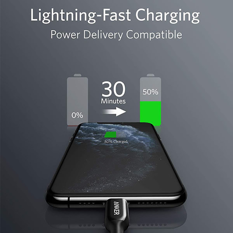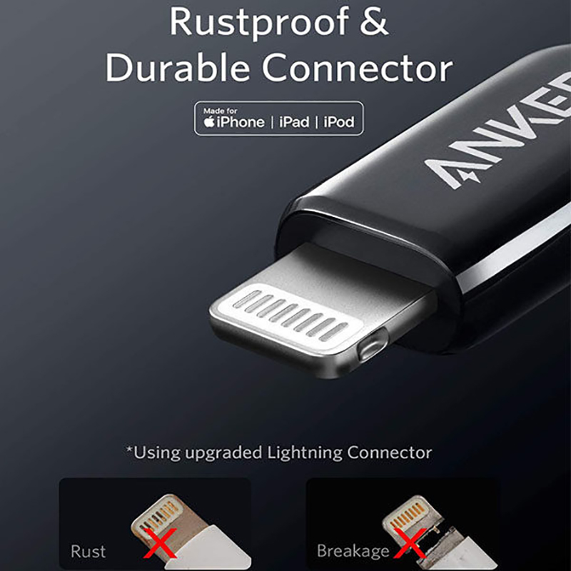 کابل تبدیل A8842 تولید شده توسط برند انکر می باشد که در زمینه تولید لوازم جانبی محبوبیت بالایی پیدا کرده است. این محصول به صورت USB-C به لایتنینگ بوده و مقاومت بالایی در برابر خمیدگی ارائه می کند به گونه ای که قابلیت تحمل تا 35000 خمیدگی را دارد. این محصول از فناوری شارژ سریع PD پشتیبانی کرده و دارای تاییدیه MFi است که نشان از سازگاری آن با محصولات اپل دارد و قابلیت شارژ ایمن را نیز دارا می باشد. توصیه شده است که برای استفاده از این کابل برای شارژ سریع که مناسب آیفون های 8 به بعد است از آداپتور های 18 وات به بالای دارای درگاه USB-C استفاده شود. نکته دیگری که مهم می باشد توانایی انتقال داده این کابل با سرعت تا حداکثر 480Mbps است.