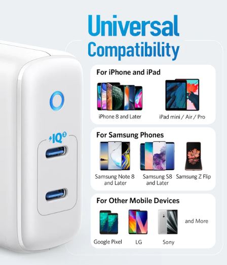 شارژر PowerPort III Duo محصول برند انکر بوده و توانایی شارژ همزمان دو دستگاه را برای شما فراهم می کند. توان خروجی حداکثری این محصول 40 وات است که بین دو درگاه USB-C آن تقسیم شده و هرکدام 20 وات را در اختیار می گذارند. این شارژر دیواری می تواند برخی گوشی های سازگار با توان آن را مانند آیفون 12 یا آیفون 12 پرو را تا 3 برابر سریع تر از شارژر های عادی شارژ کند. از این آداپتور می توان برای شارژ دستگاه های مختلفی که با ولتاژ و جریان خروجی آن سازگاری دارند استفاده کرد.
