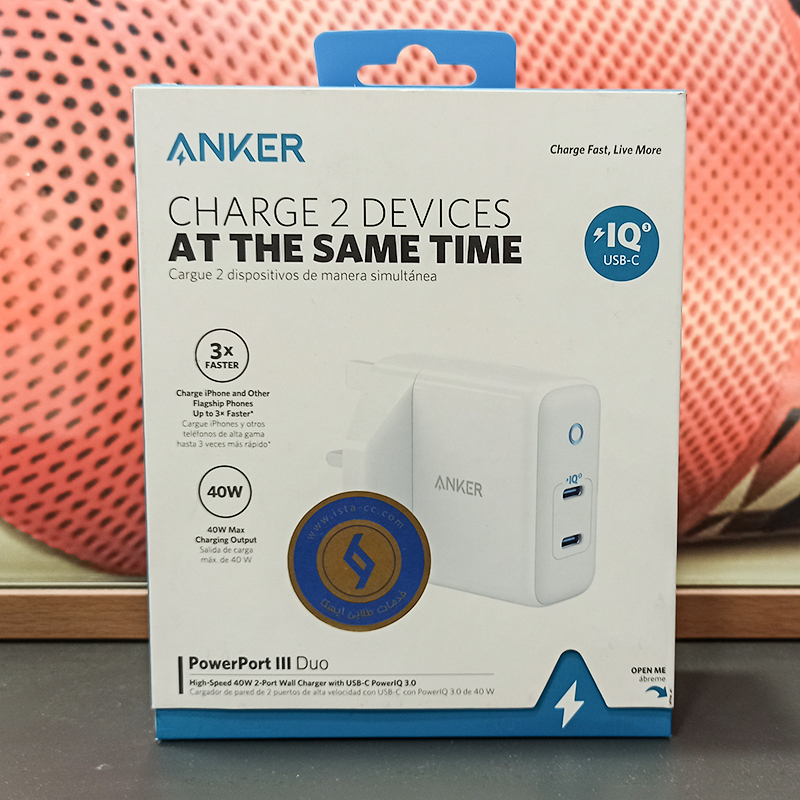 آداپتور و شارژر دیواری 40 وات انکر | Anker PowerPort III Duo A2628