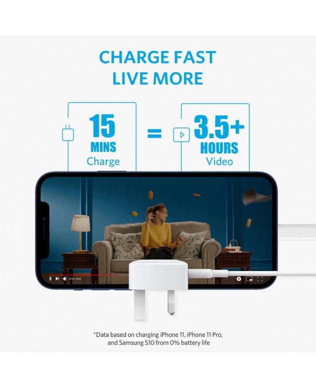 آداپتور 20 وات انکر با ابعاد 28*28*40 میلیمتر و وزن 106 گرم این امکان را برای شما فراهم می کند تا به راحتی این آداپتور شارژ را حمل کنید و در خانه، دفتر و یا در مسافرت به استفاده از آن بپردازید. آداپتور 20 وات A2633 با تمام دستگاه های دارای پورت USB-C سازگار می باشد و شما می توانید با قرار دادن این محصول درون برق و وصل کردن کابل یک سر تایپ سی (سر دیگر کابل تفاوتی ندارد که لایتنینگ باشد یا Type-c) به شارژ کردن دستگاه های خود بپردازید. اما نکته ای که در باره این محصول می ماند آن است که Powerport III توانایی ارائه توان 20 واتی را داراست و این بدان معناست که می تواند گوشی هایی را که از قابلیت شارژ سریع پشتیبانی می کنند در سریع ترین زمان ممکن شارژ کند.